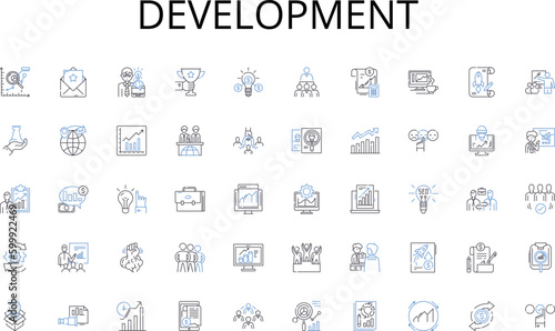 Development line icons collection. Writing, Painting, Coding, Gardening, Sewing, Knitting, Cooking vector and linear illustration. Reading,Exercising,Meditating outline signs set