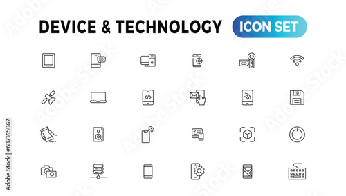 Device and Information technology line icons collection. Big UI icon set in a flat design. Thin outline icons pack