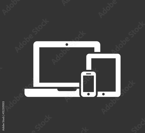 Device Icons: smart phone, tablet and desktop computer. Vector illustration of responsive, adaptive web design