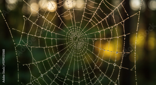 Dew Drops Adorning a Delicate Spiderweb in the Soft Morning Light