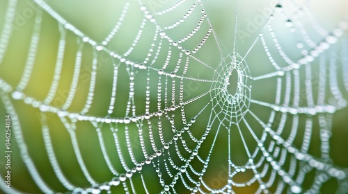 Dew-covered spider web, intricate and delicate, natural beauty, space for text below, Macro Photography, High Resolution
