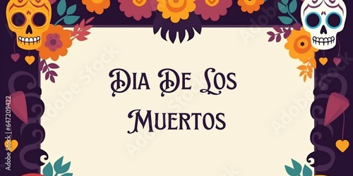 Dia De Muertos Hand drawn template frame for celebration background Day of The Dead