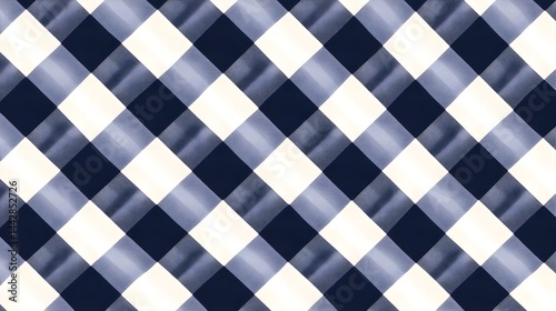 Diagonal gingham pattern in navy blue and white with a subtle watercolor effect