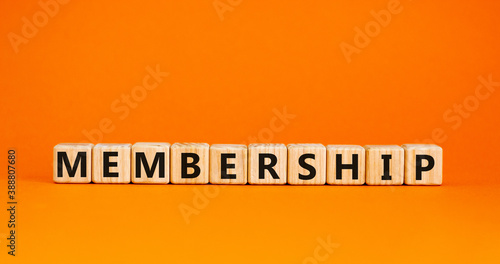 Dice form theword 'membership'. Beautiful orange background. Business concept, copy space.
