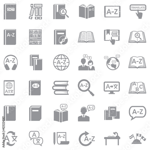 Dictionary Icons. Gray Flat Design. Vector Illustration.