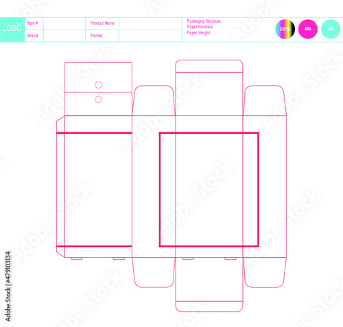 Die-Cut Template Box Package Design, 3D Box Package Dieline, Factory Ready Hang Tab Paper Box Outline with Standing Feet, Packaging Box Template, Editable Tech Pack Vector for Production, Hang Box SVG