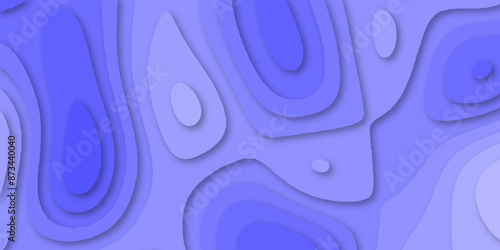 Difference type abstract 3D art paper cut monochrome height map topographical repeating pattern, smooth gradients of blue and color abstract paper art with layer lines creating of depth and contour.