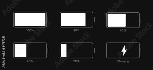 Different Battery charge level. Set of battery charge level indicators. Wireless charging energy sign. Vector Illustration