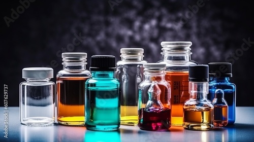 Different bills and bottles for pharmaceutical and healthcare medication and drug research labs concepts. Generative ai
