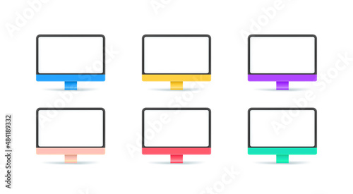 Different modern computers monitors with blank screen. Objects isolated on white background. 3d vector illustration