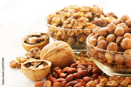 Different nuts in glass cups