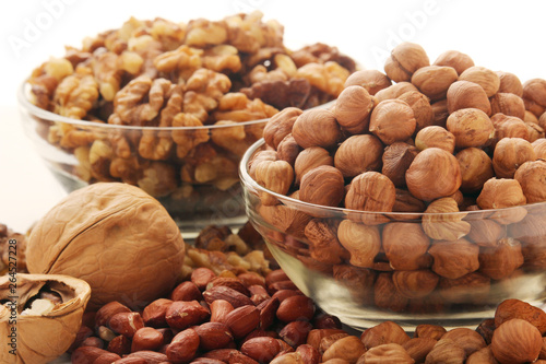 Different nuts in glass cups