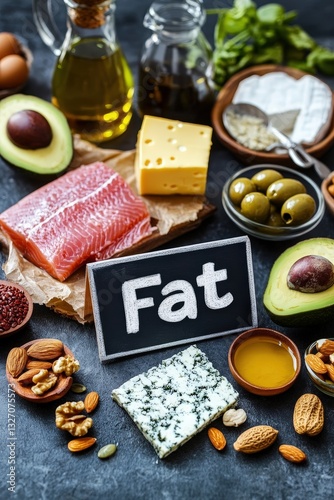 different products containing fat. Selective focus.
