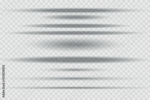 Different realistic round shadow, soft shapes on transparent background. Gray circular and ellipse shadows set. Vector illustration.