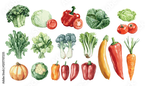 Different Vegetables Watercolor Set Illustration White Unique Artwork Creative Decorative Elements Artistic Visuals Modern Graphics Distinctive Style Fresh Vegetables Collection