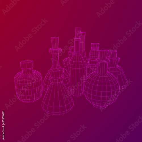 Different wine bottles. Model wireframe low poly mesh vector illustration