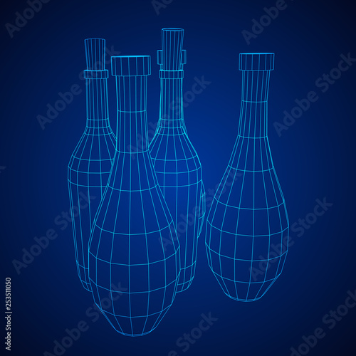 Different wine bottles. Model wireframe low poly mesh vector illustration
