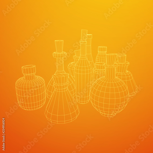 Different wine bottles. Model wireframe low poly mesh vector illustration