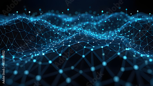 Digital Abstract: A captivating digital rendering unveils a mesmerizing network of interconnected nodes, radiating a sense of technological advancement and interconnectedness in cool-toned hues.
