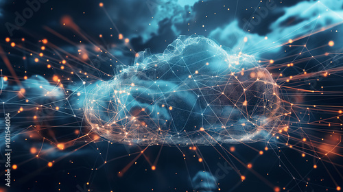 Digital abstract cloud network with data, technology, and computing in a wireframe design