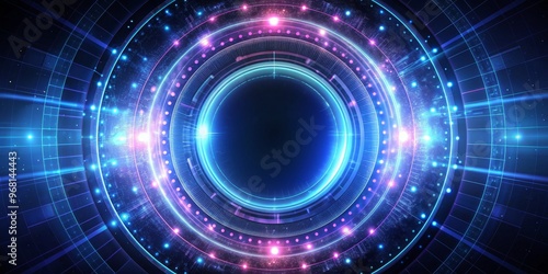Digital Abstract with Blue and Pink Circular Glowing Lights, digital art, abstract, neon