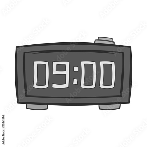 Digital alarm clock icon in black monochrome style isolated on white background. Time symbol. Vector illustration