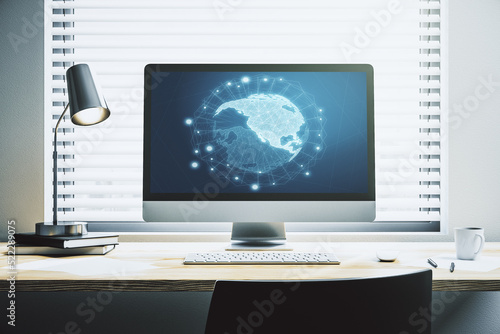 Digital America map on modern laptop screen, international trading concept. 3D Rendering
