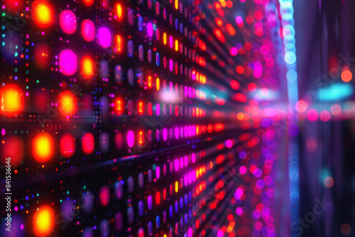 Digital art of a neon gridscape featuring vibrant, glowing patterns,