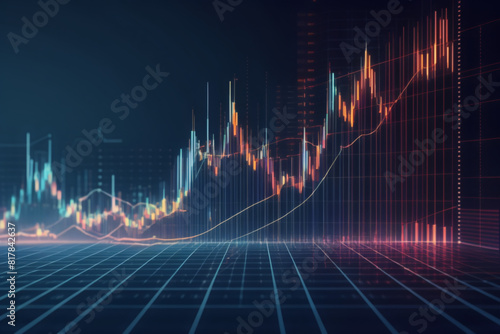 Digital backdrop featuring stock graphs, finance data, economic trends, and trade statistics