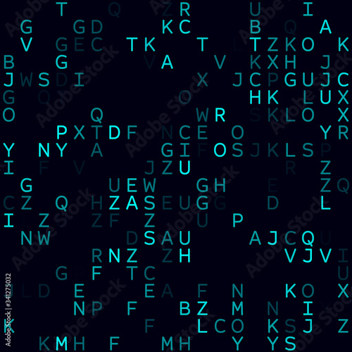 Digital background. Cyan sparse alphabetical background. Small sized seamless pattern. Stylish vector illustration.