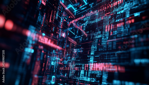 Digital background featuring an abstract representation of computer code and data,