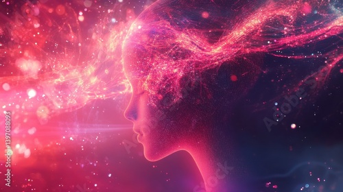 Digital background perfect for tech processes, neural networks, artificial intelligence, data transfer and encryption, digital archives, sound and graphic presentations, science, education, etc. illu