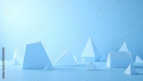Digital Background Transparent floating triangles scatter in a soft blue field