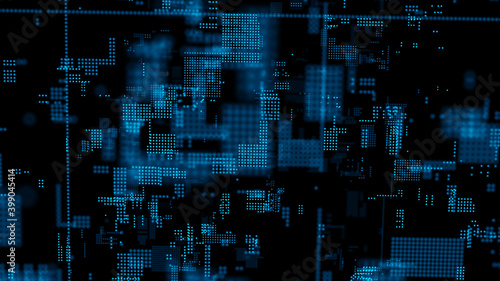 Digital background with moving glowing particles. Futuristic hi-tech illustration. Concept of data transfer in cyberspace. Big data visualization. 3d rendering.