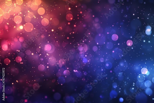 Digital background with multicolor particles, bokeh and shiny star dots.