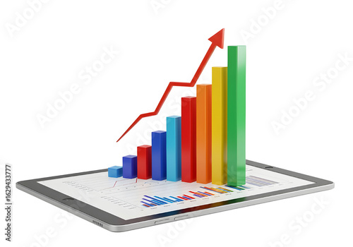 Digital Bar Graph with Upward Trend Colorful bar graph displaying steady business growth on a digital screen