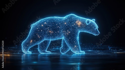 digital bear composed of blue lines symbolizing polars package efficiency in dat analysis.stock image