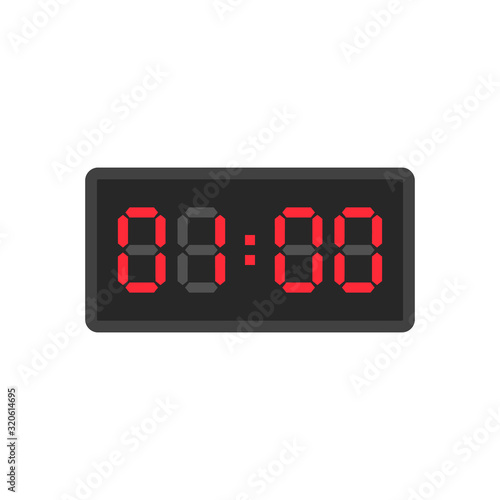Digital black alarm clock displaying 1:00 o'clock. Clipart image isolated on white background
