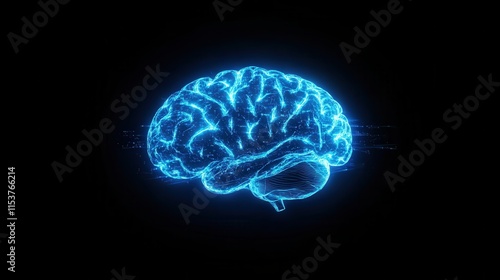 Digital Brain: A stylized digital rendering of the human brain, glowing with a vibrant blue light against a dark background. The image evokes concepts of intelligence, cognition, and neural networks.