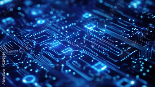 Digital Brain: Glowing circuitry illuminates the intricate pathways of a powerful motherboard, symbolizing the complexity and potential of modern technology.
