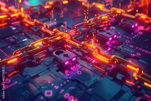 Digital chain link Link protection, Chain of network connections background, Blockchain and network.