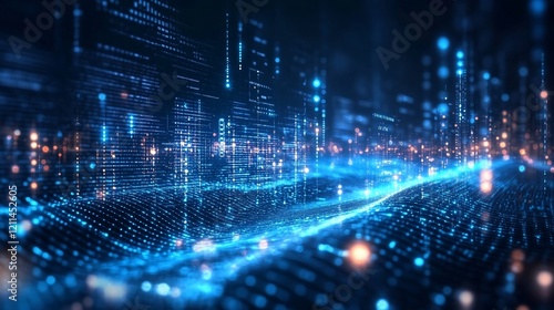 Digital city data flow, futuristic tech landscape, glowing network, background for tech presentations