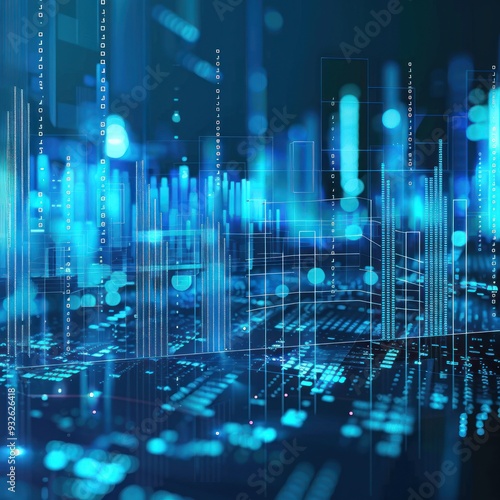 Digital Cityscape: Abstract Futuristic Metropolis with Glowing Lines and Data