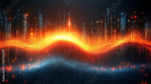 Digital Cityscape Illuminated By Radiant Energy Waves