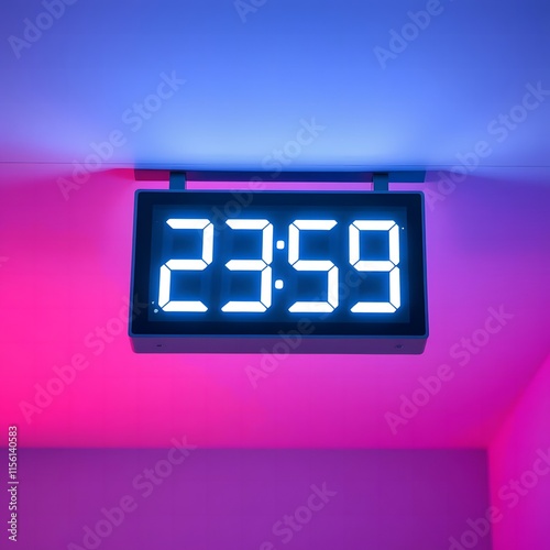 Digital Clock Displaying 23:59 with Bright Blue Digits and Gradient Blue-Pink Background
