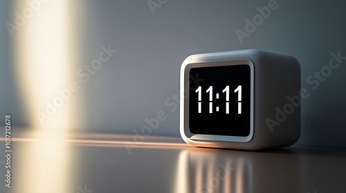 Digital clock displays "11:11". Evoking thoughts of manifestation, synchronicity, and the significance of repeating numbers.