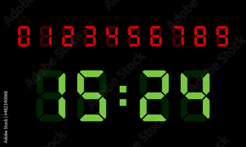 digital clock. Numbers for timer, calculator and modern clock face display.
