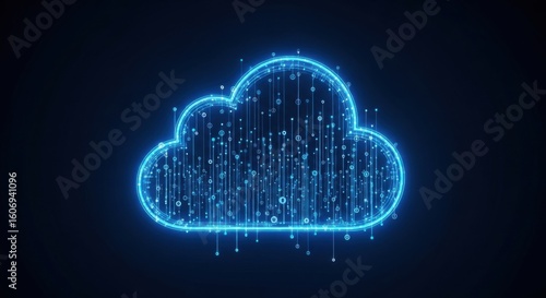 Digital Cloud Icon with Network Data Streams in Futuristic Blue Style