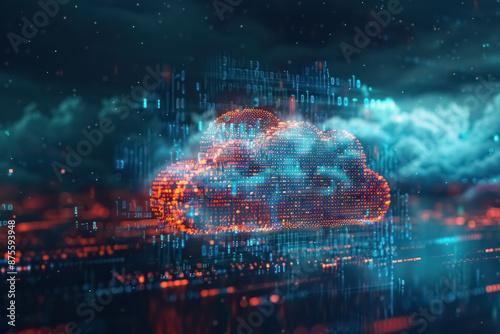 Digital Cloud Network Technology Binary Code Data Storage Connectivity Concept