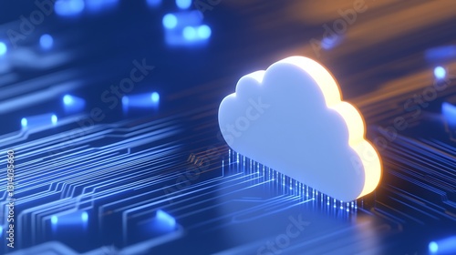 Digital Cloud Symbol Over Circuit Lines Representing Data Storage and Technology Innovations in Computing